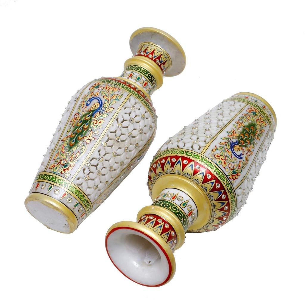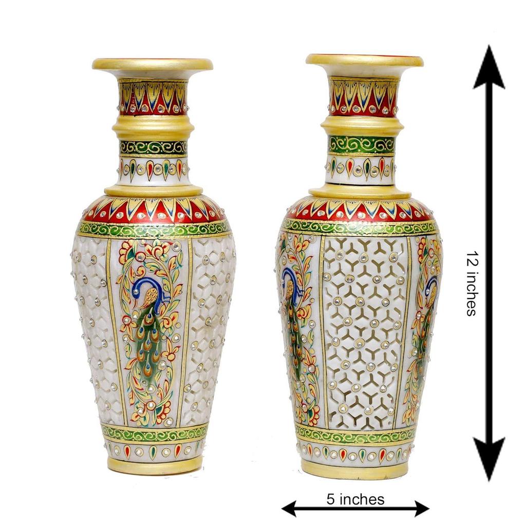 Дизайнерская декоративная мраморная ваза для цветов | Круглая форма Павлиний павлин с перьями Статуэтка Вазы для украшения дома
