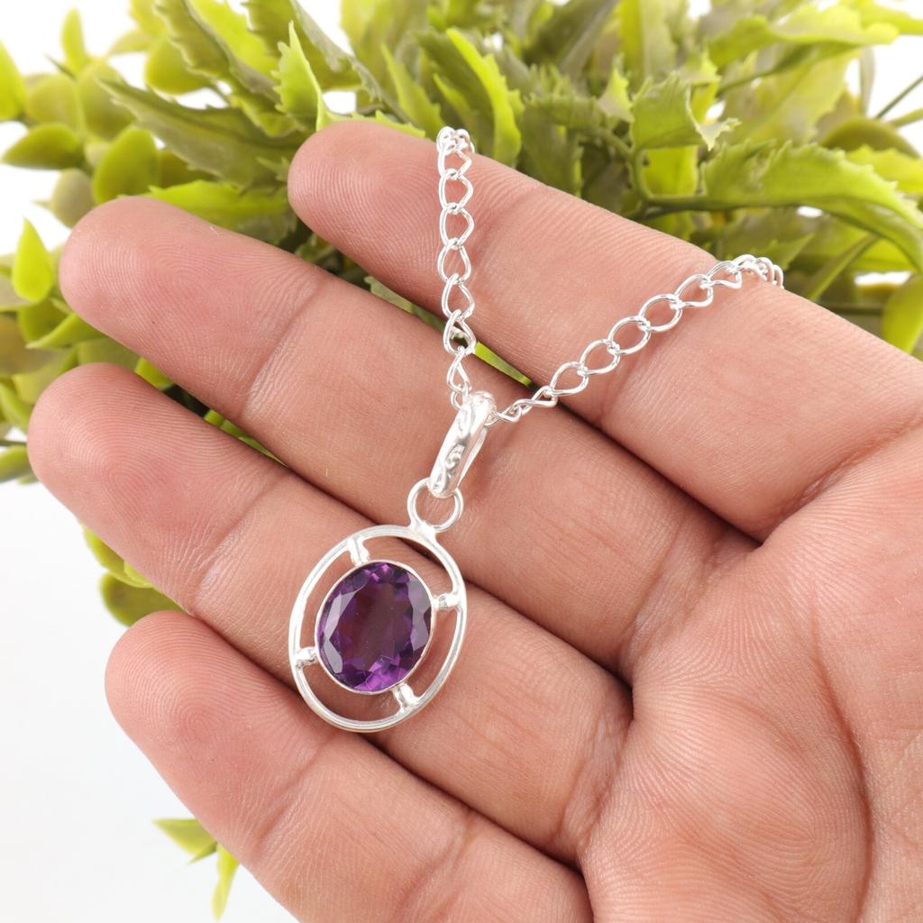 Африканский аметист камень стерлинговое серебро подарок на годовщину помолвка бохо кулон PP-6-4