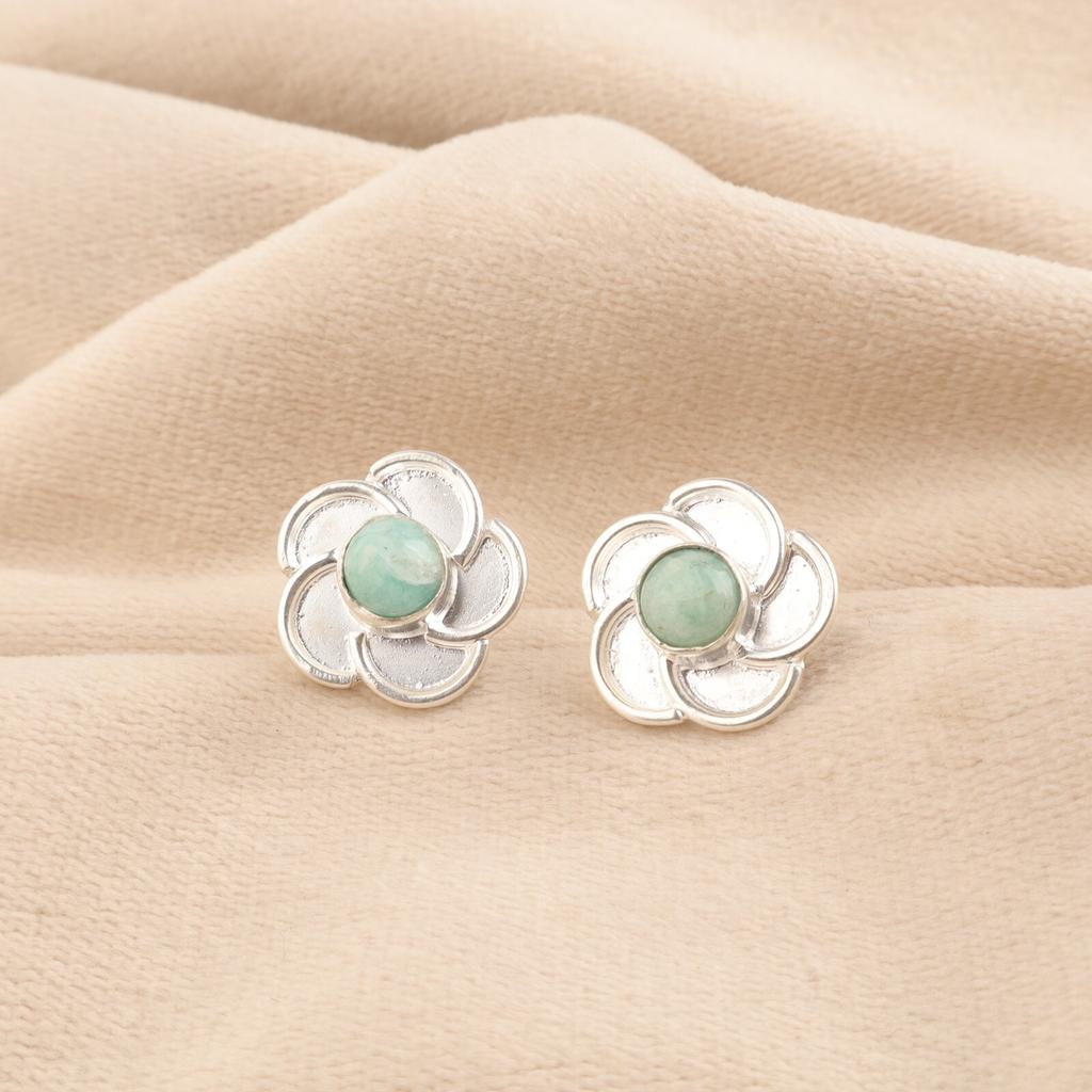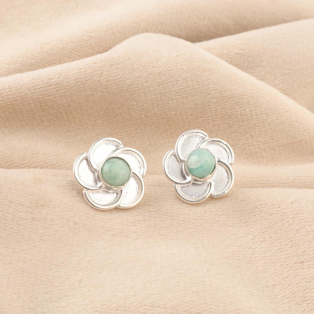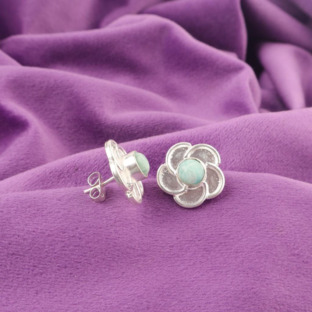 Круглый камень амазонит серебро 925 пробы пусеты подарок жене серьги-пусеты ювелирные изделия EE-157-25