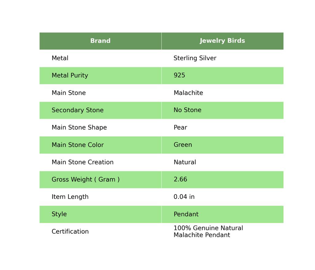 Груша Малахит Камень 925 Стерлинговое Серебро Помолвочный Подарок Жене Подвеска Ювелирное Изделие PP-56-30