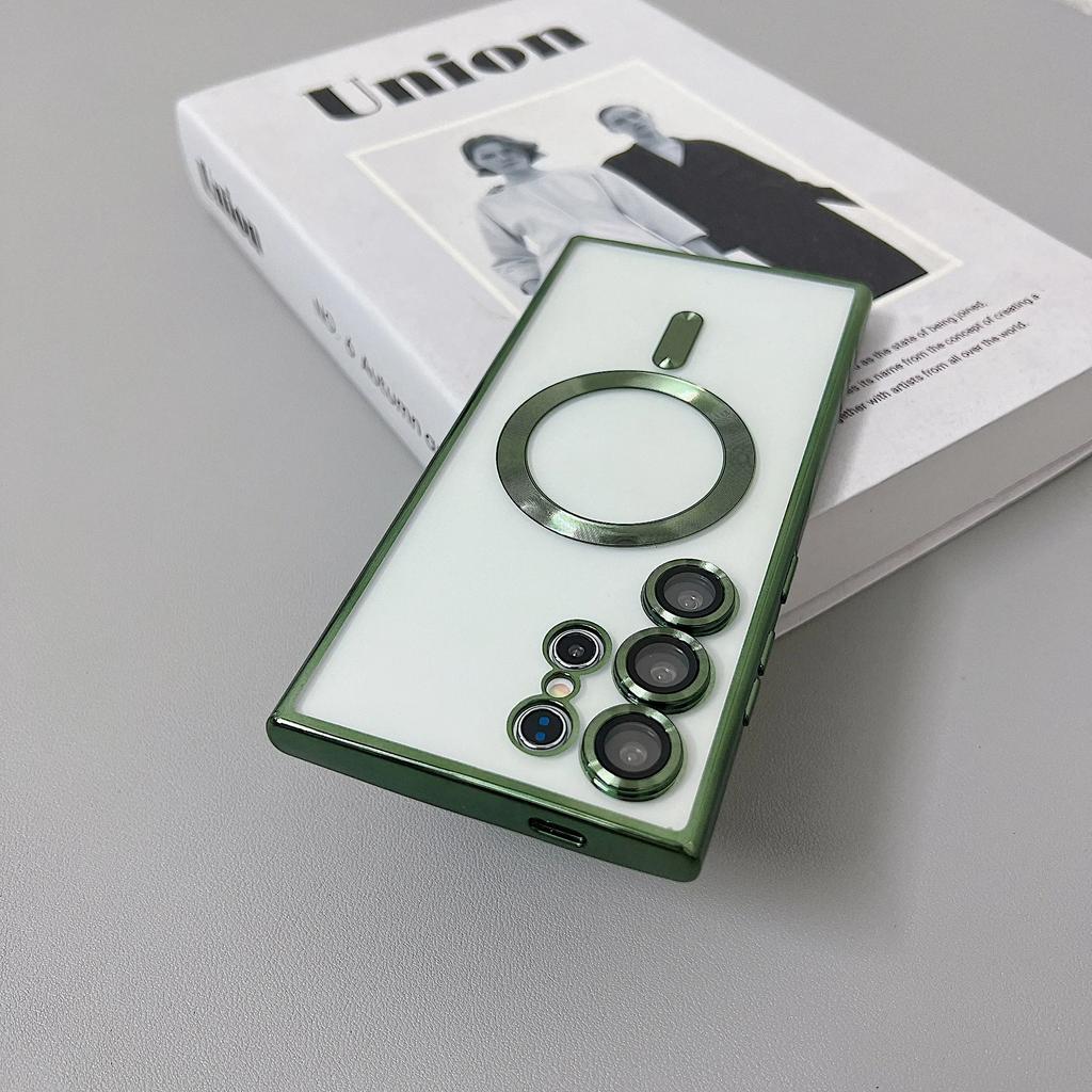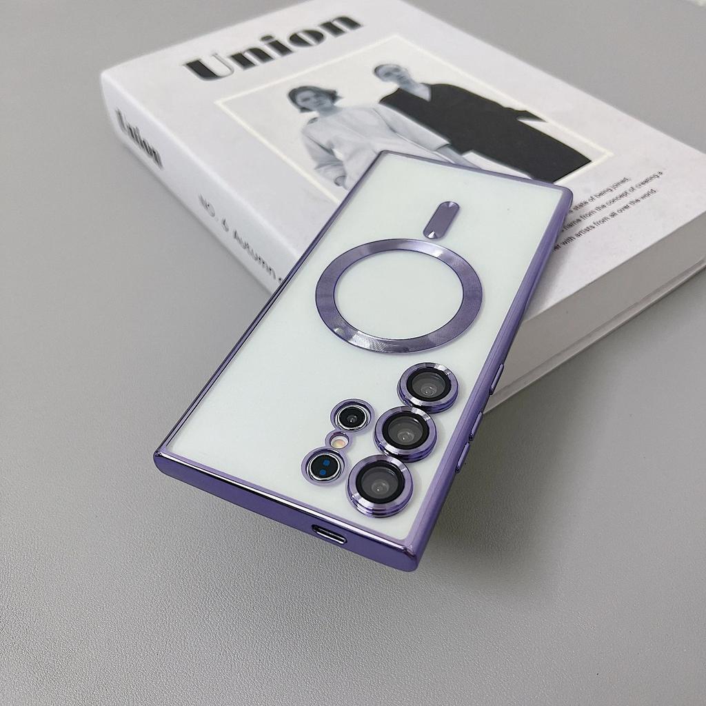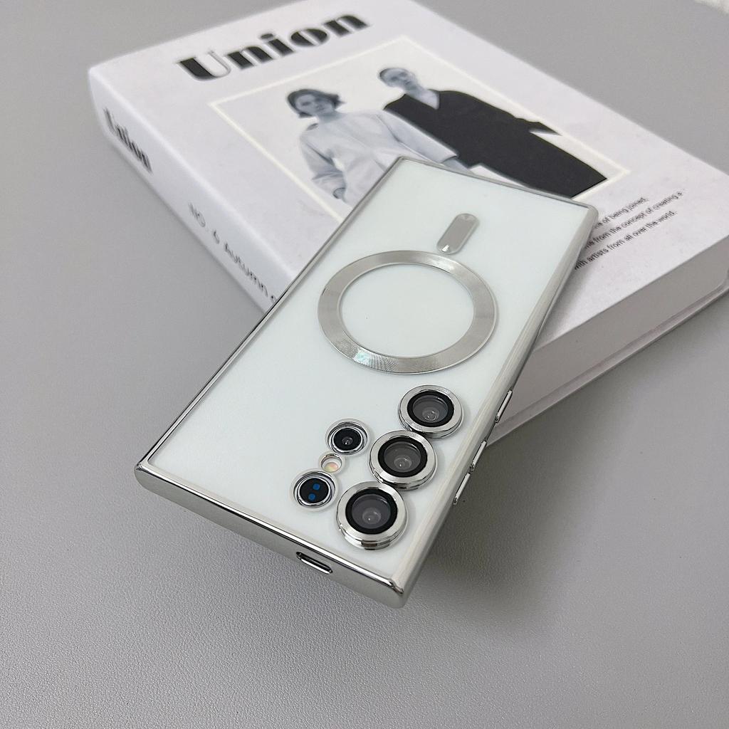 Прозрачный чехол с покрытием MagSafe для Samsung Galaxy S25 S24 S22 S21 S23 Ultra Plus Магнитная беспроводная зарядка Силиконовая мягкая обложка