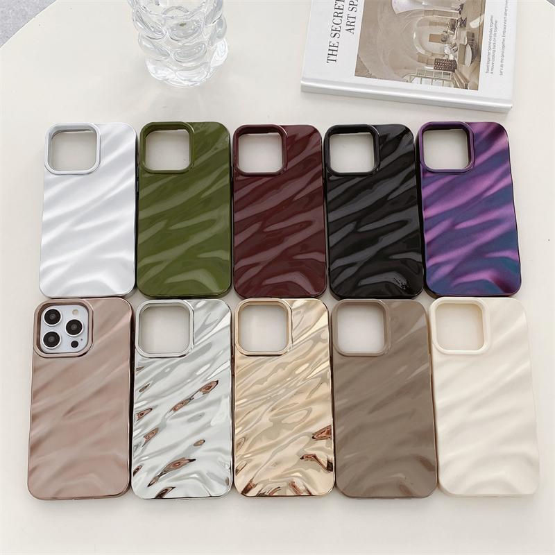 Роскошный чехол для телефона с волнистым атласным узором и оборками для iPhone 11 12 13 14 15 16 Pro Max Plus, блестящий, противоударный, однотонный чехол