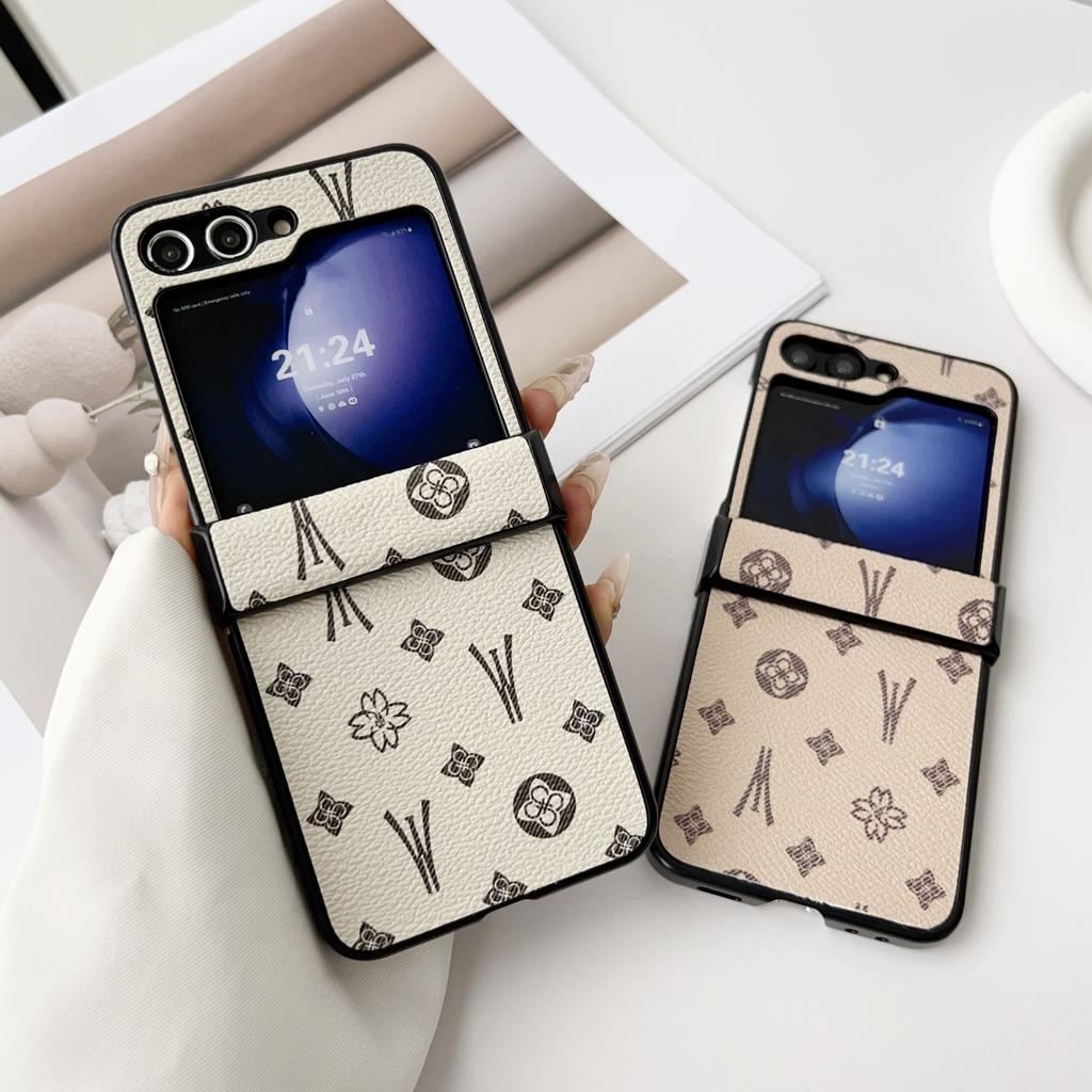 Роскошный кожаный чехол с узором для телефона Samsung Galaxy Z Flip 7 6 3 4 5 Flip7 Набор из нескольких частей Защитный чехол для шарнира из ПК