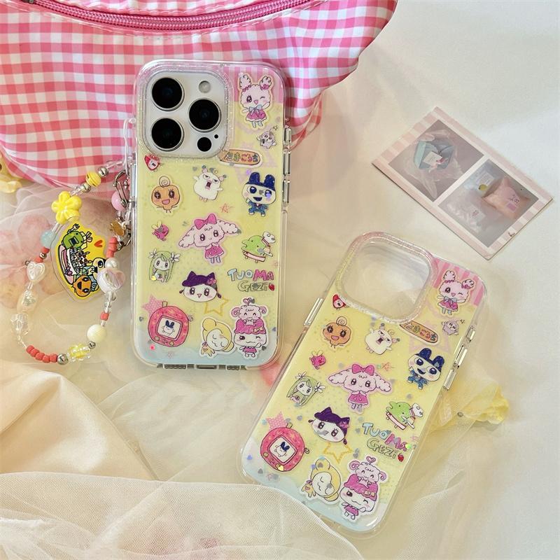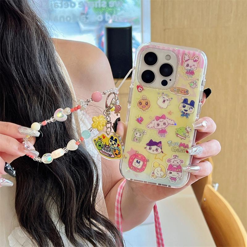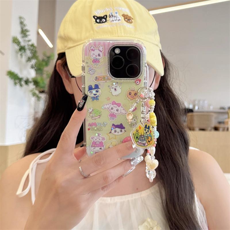 Милый мультяшный чехол для телефона с животными для iPhone 16 14 Pro 15 13 12 Pro Max Задняя крышка с цепочкой Противоударные жесткие чехлы Kawaii Funda