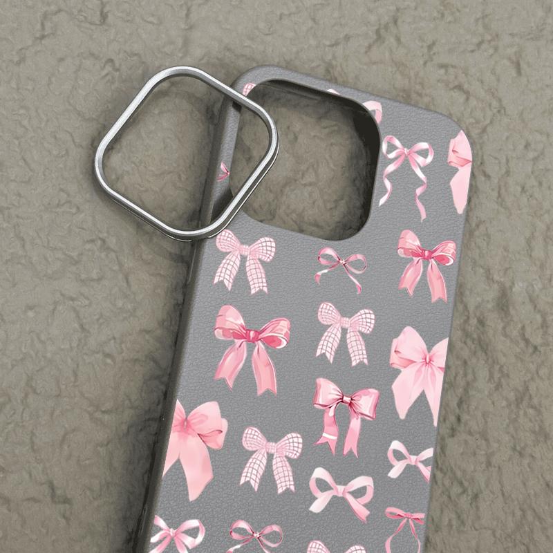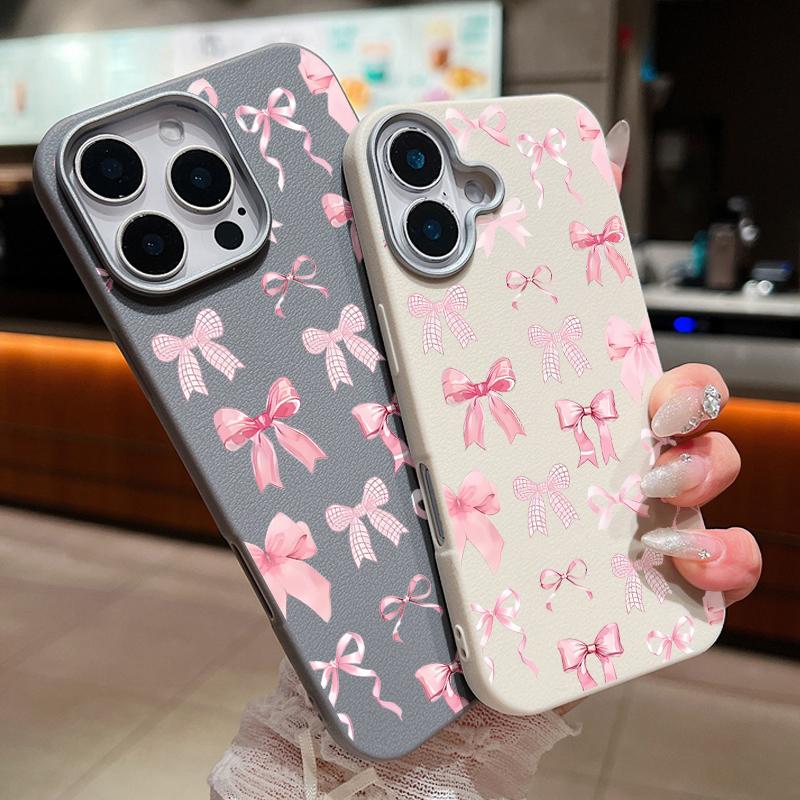 Роскошный чехол с розовым узором в виде банта для iPhone 16 15 14 Pro Max 15 16 Plus 13 12 Pro Max 11 Противоударный чехол с текстурой кожи, мягкий чехол для телефона