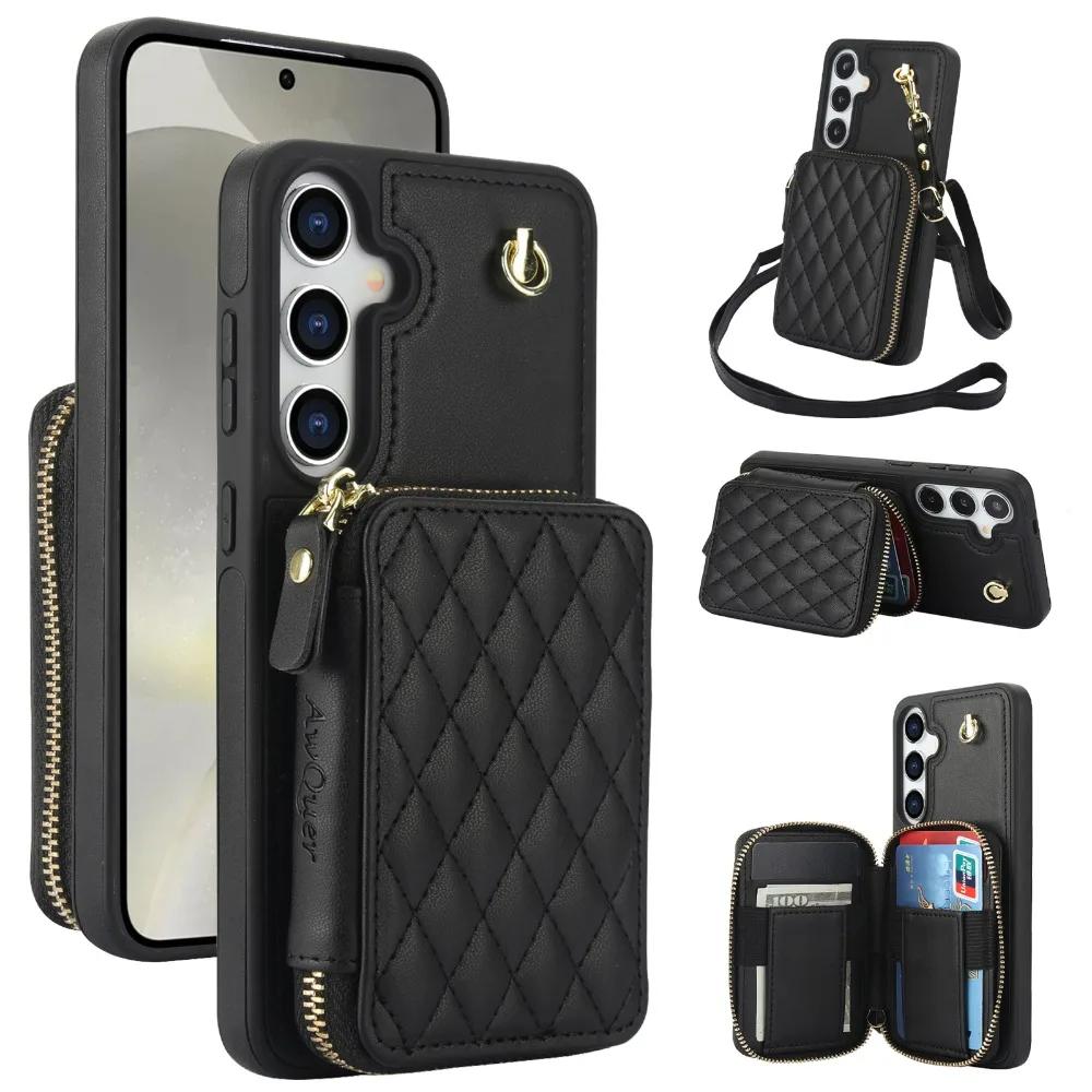 Чехол-кошелек с ремешком на запястье для Samsung Galaxy S25 Ultra S24 FE S23 S22 Plus A14 A54 A15 A35 A55 с чехлом-кошельком и держателем для карт
