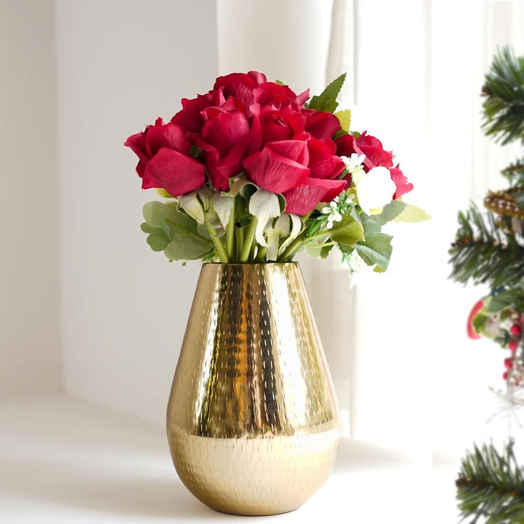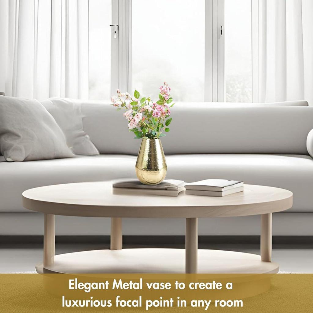 Металлическая ваза в форме капли с кованым цветочным узором для домашнего декора, ваза для украшения офисного стола, современная ваза, подарок на годовщину, фестиваль, 7,5 дюймов, золотая 1 шт. (Цветы не включены)