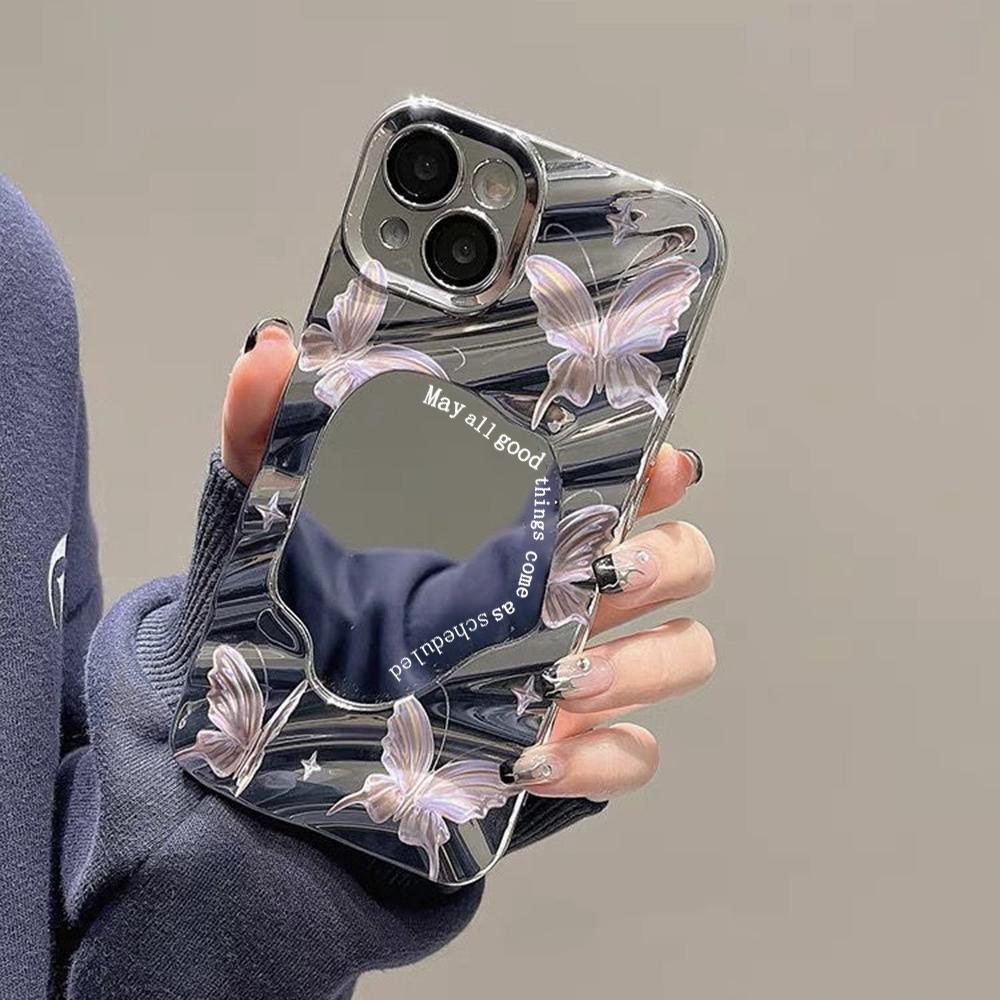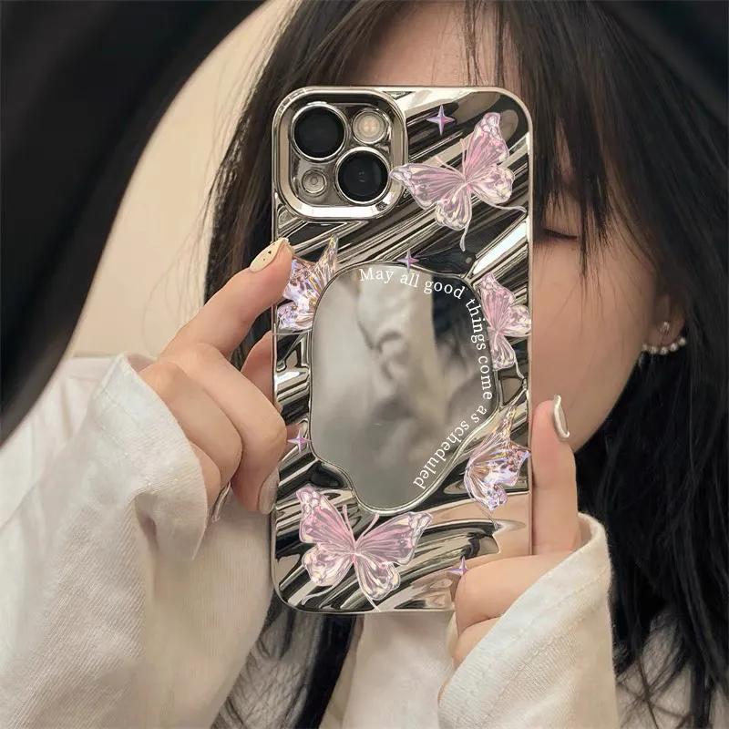 Роскошный чехол для телефона с зеркалом для макияжа Samsung A55 5G A54 A15 A35 A34 A33 A32 A53 A52s A51 A16 A04 A13 A12 Butterfly Covers Funda