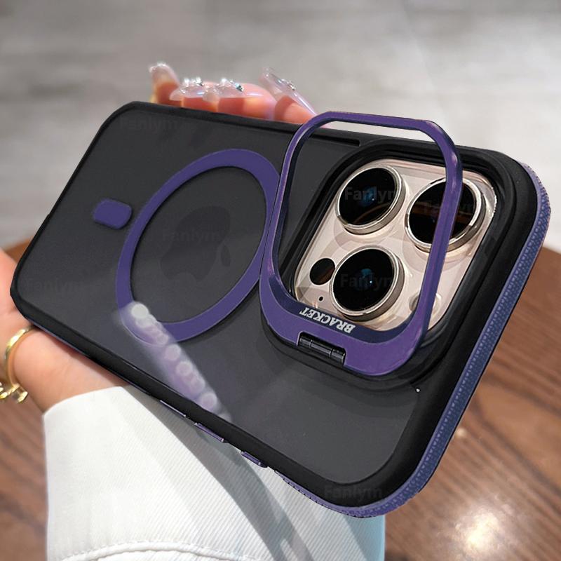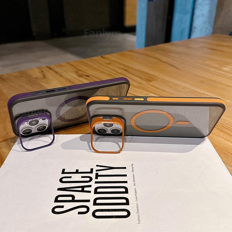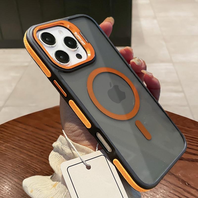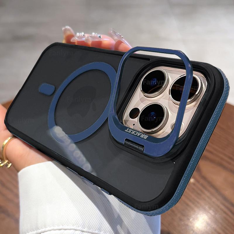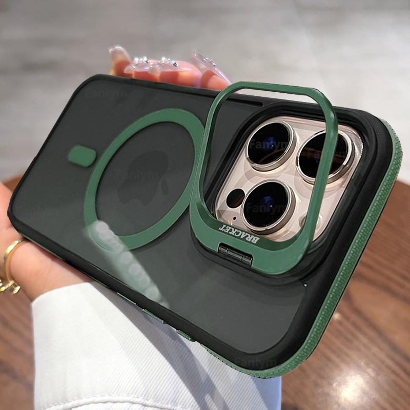 Черный Прозрачный Для Magsafe Двухцветный Магнитный Чехол Для iPhone 16 15 14 13 12 11 Pro Max Plus Подставка Полупрозрачная Крышка