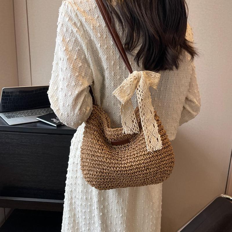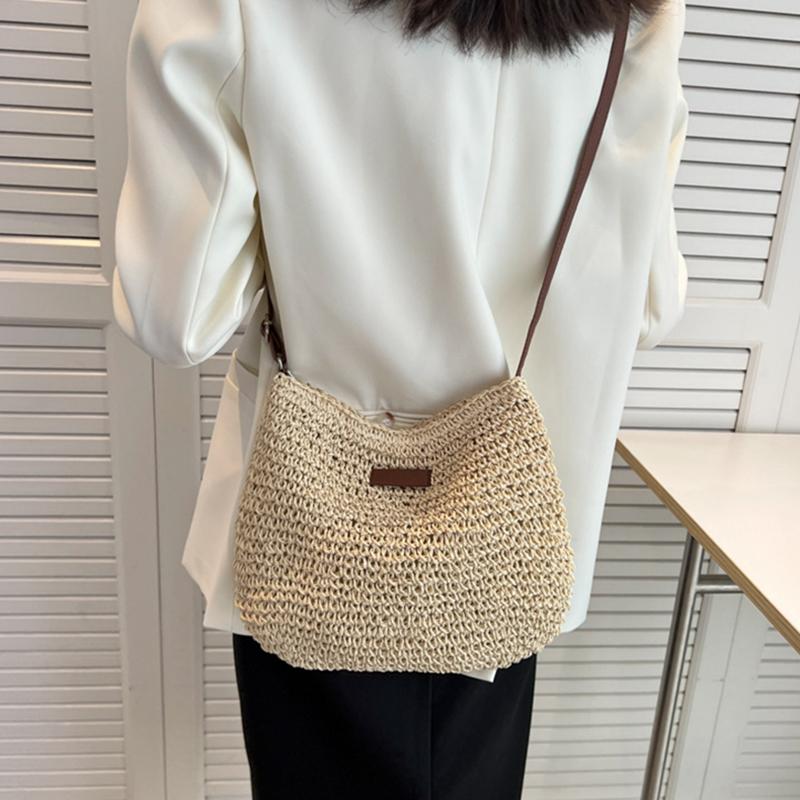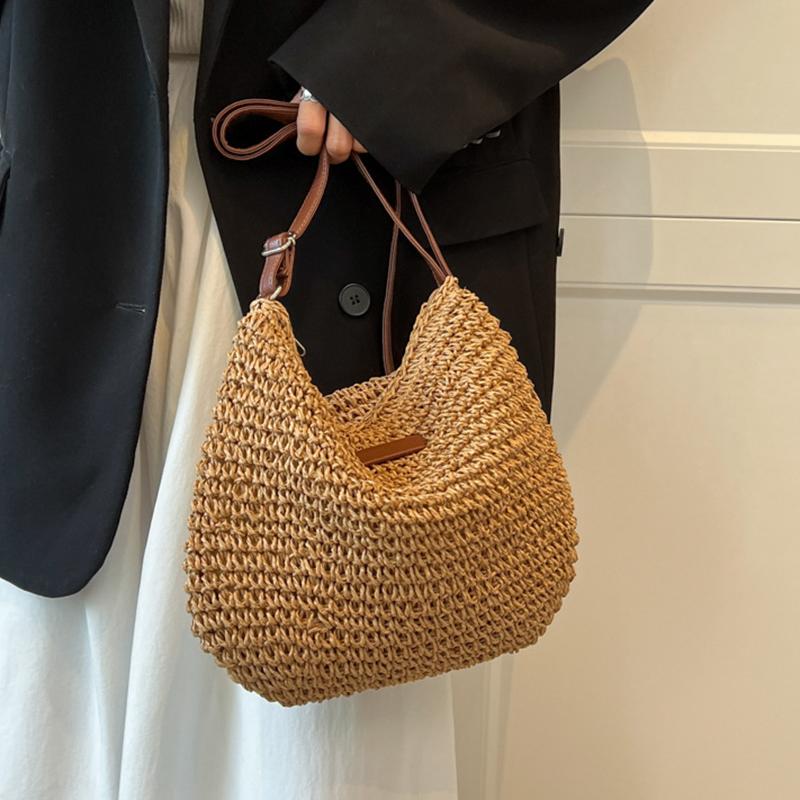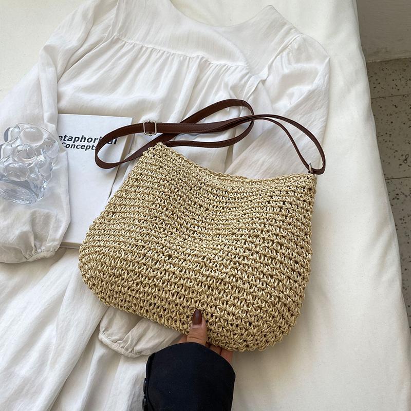 Летняя соломенная сумка из ротанга для женщин, вязаная пляжная сумка, сумка через плечо в богемном стиле, сумки на плечо для отпуска
