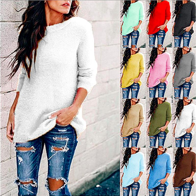 Свободный и повседневный стиль Пуловер из чистого хлопка с круглым вырезом