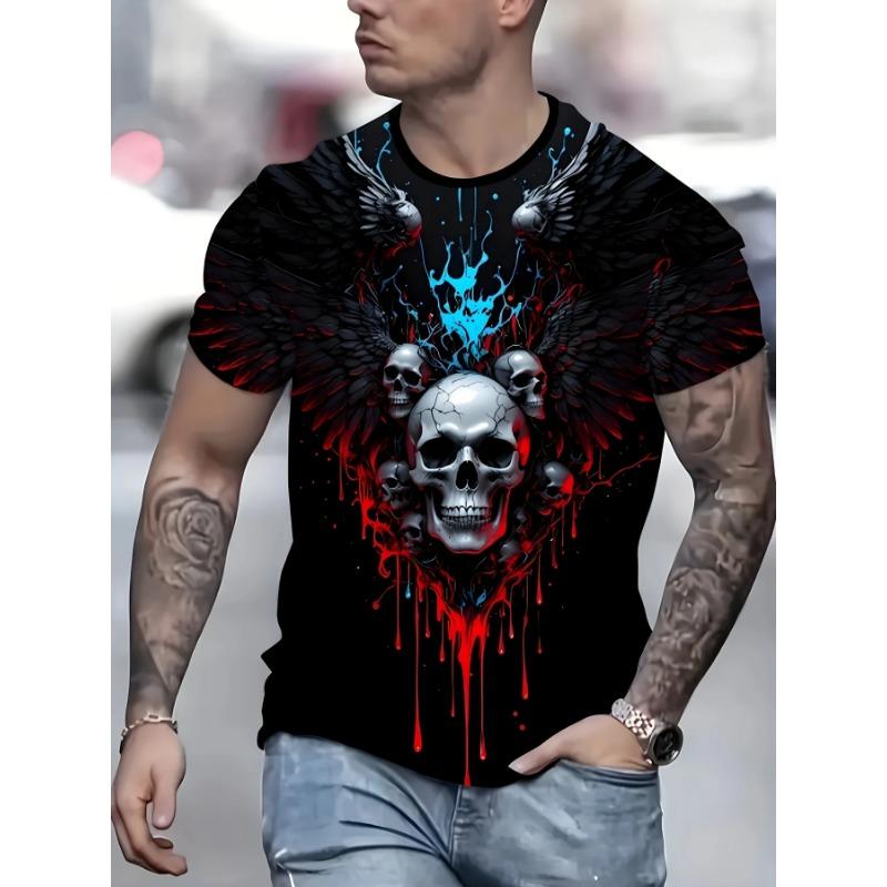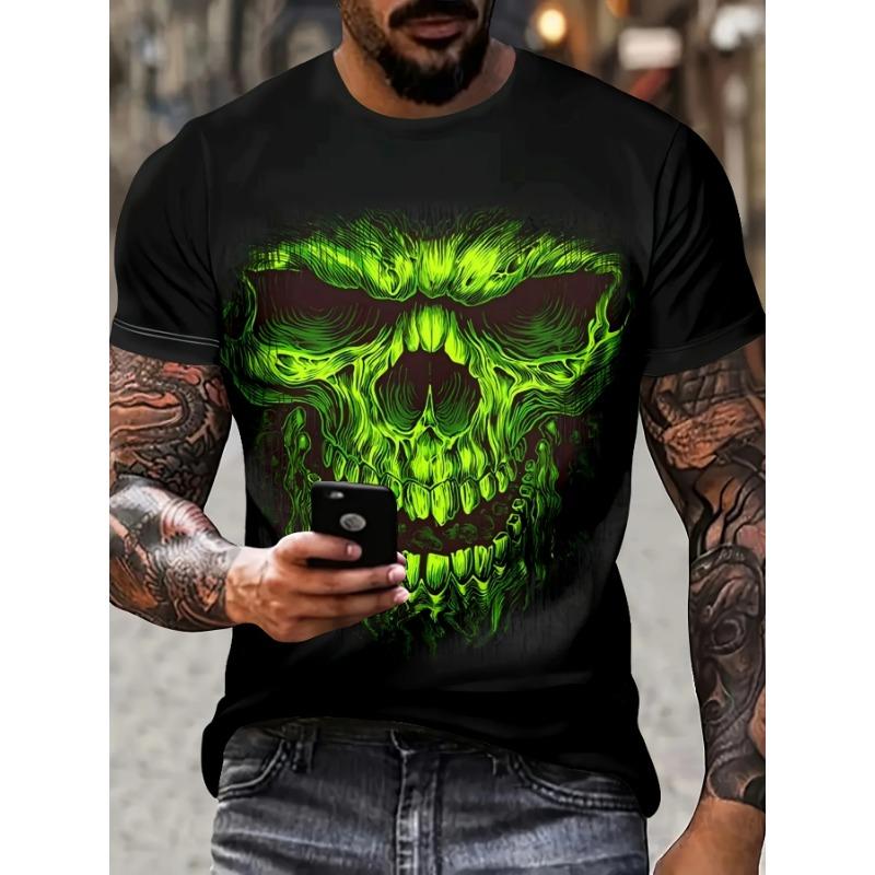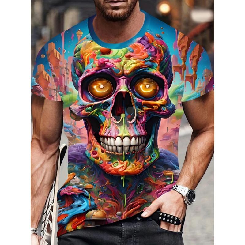Мужская футболка с коротким рукавом, топы с 3D-принтом черепа, футболки с круглым вырезом, летняя футболка оверсайз, хип-хоп футболки