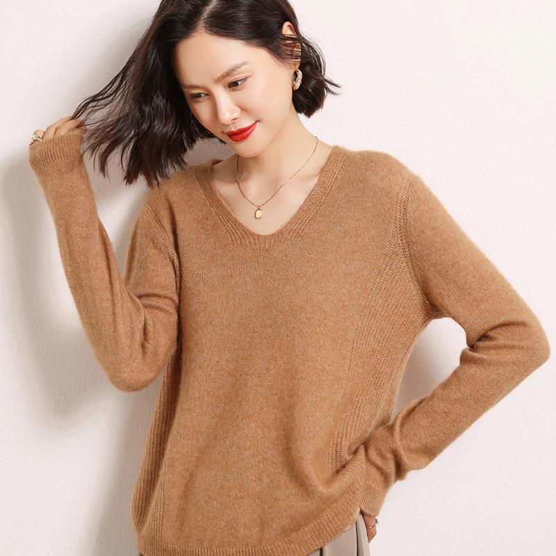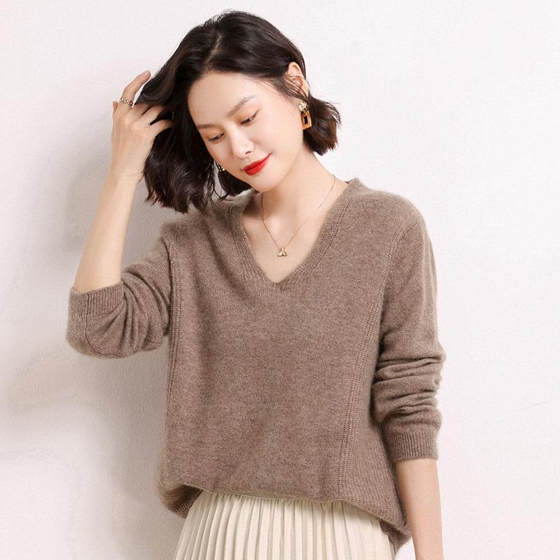 Кашемировый свитер с V-образным вырезом для женщин Осень-Зима Новый Свободный и Универсальный Кашемировый Базовый Свитер Мягкий и Эластичный Теплый Топ