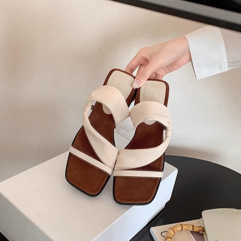 Две носки тапочки с квадратным носком на утолщенной подошве для пляжного отдыха женские сандалии можно носить на улице летом
