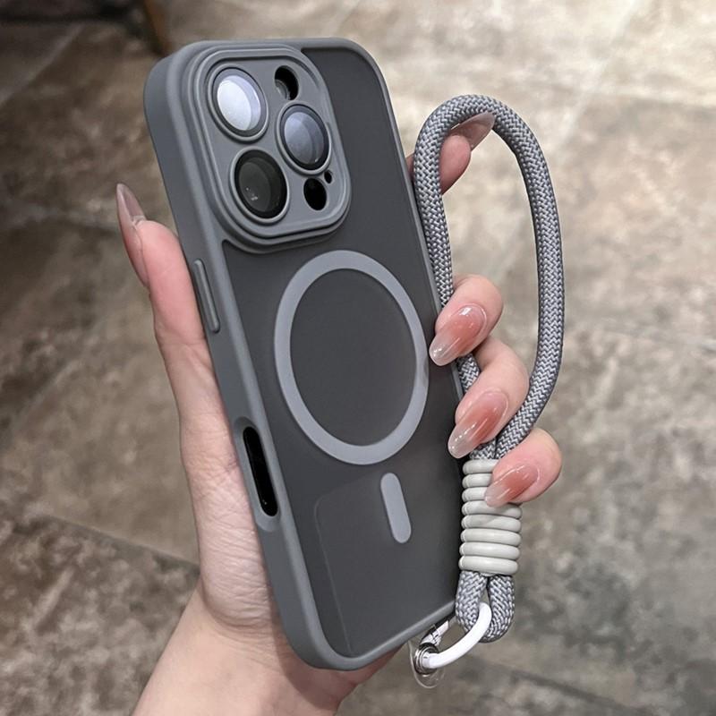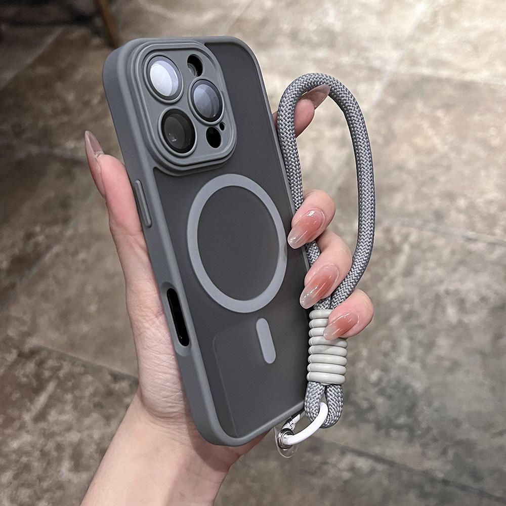 Прозрачный матовый магнитный чехол для iPhone 16 14 13 Mini 15 12 11 Pro Max Plus со шнурком-браслетом Magsafe противоударный бампер