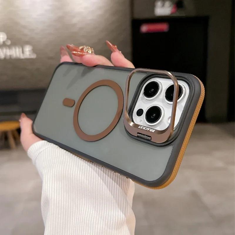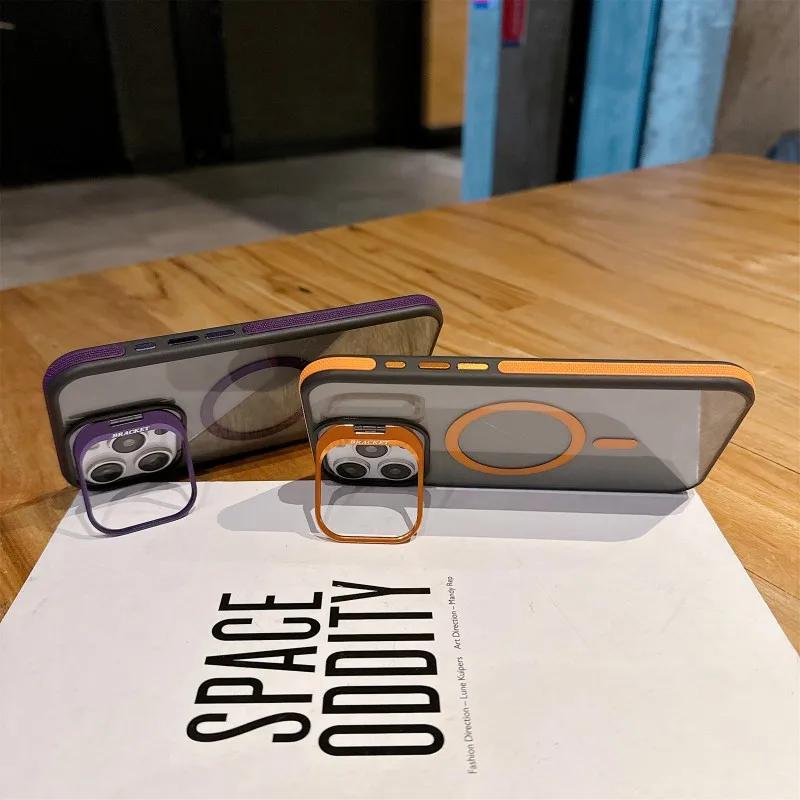 Модный двухцветный магнитный чехол-подставка с полупрозрачным покрытием для iPhone 16 15 14 13 12 11 Pro Max Plus Magsafe Сплайс цвет Матовый чехол