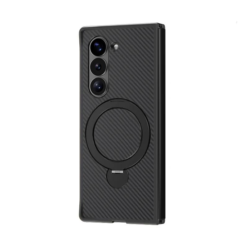 Ударопрочный вращающийся держатель из углеродного волокна кожаный чехол для телефона Samsung Galaxy Z Fold 6 5 4 Fold6 Fold5 Fold4 5G Bracket Cover