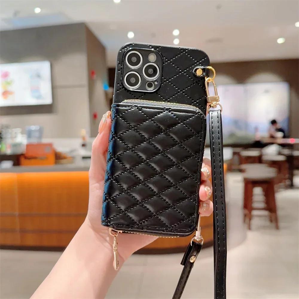 Чехол-кошелек на молнии для iPhone 16 15 14 13 12 11 Pro XS Max X XR 7 8 Plus с отделением для карт и кожаным шнурком