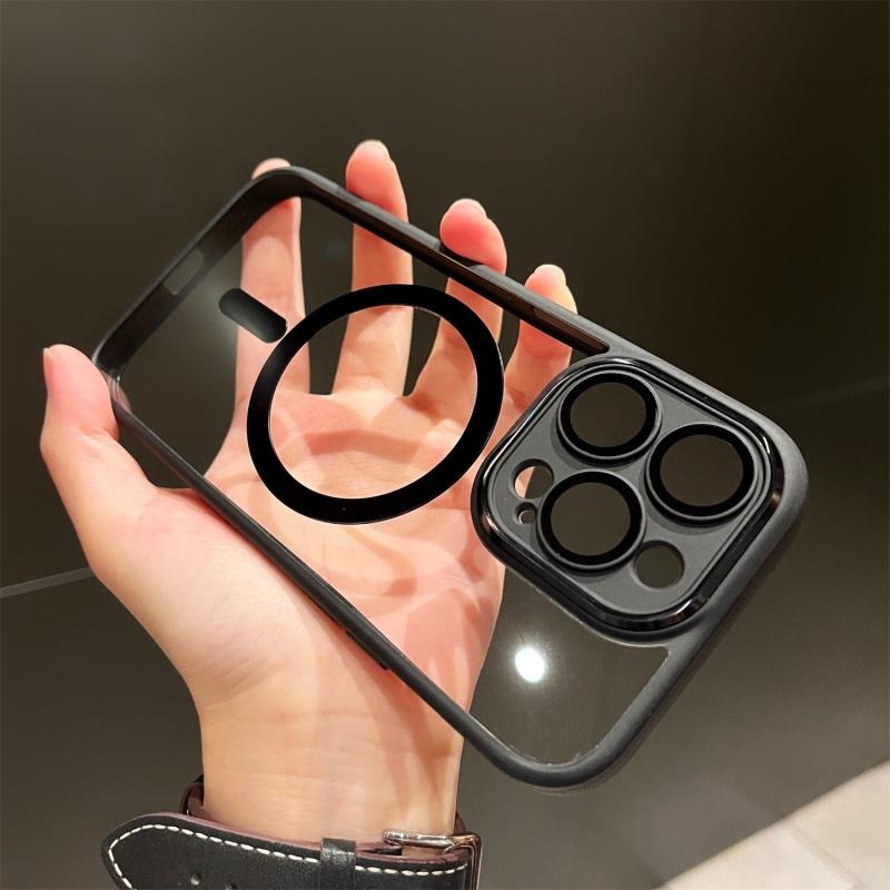 Прозрачный чехол HD с защитой объектива для iPhone 16 15 14 13 12 Pro Max Магнитный для беспроводной зарядки MagSafe