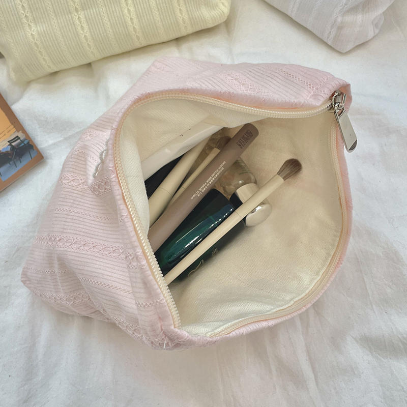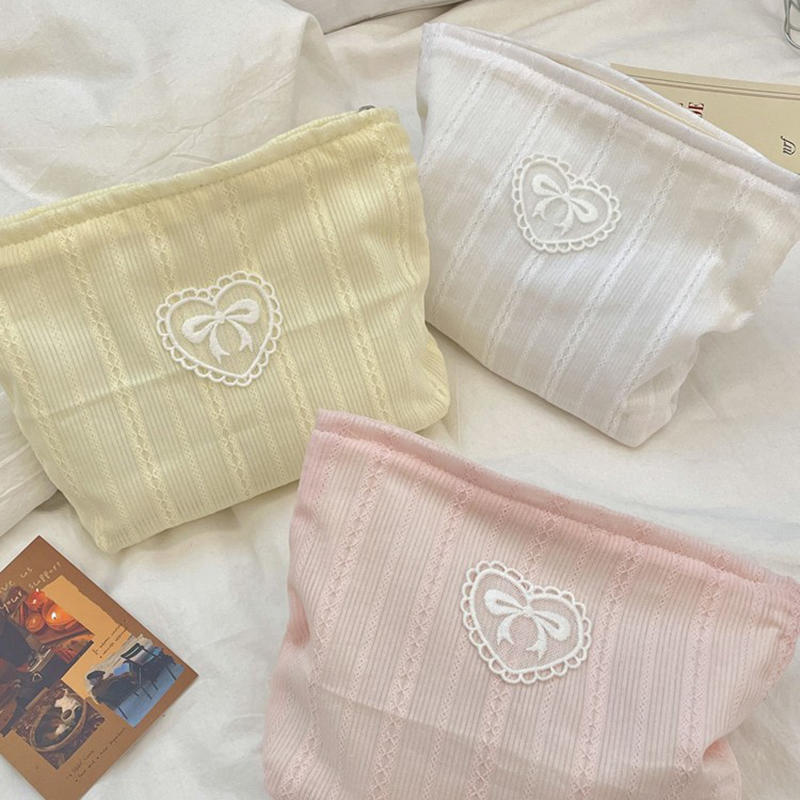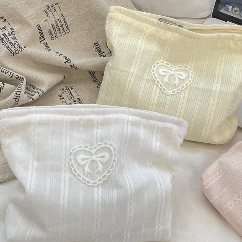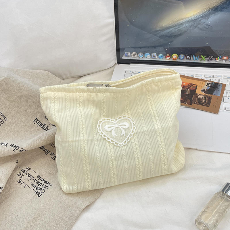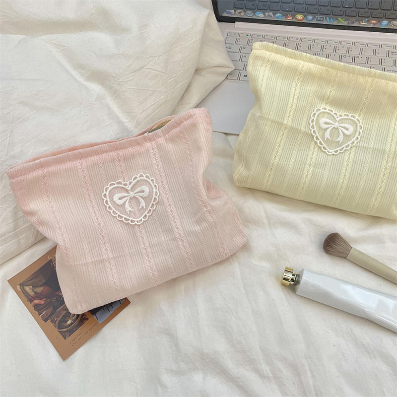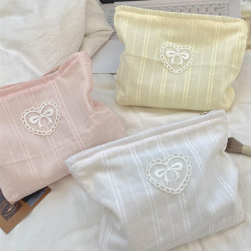 Красивая простая косметичка в стиле INS, милая вышивка, бант, полосатый кейс для макияжа, портативные дорожные сумки для хранения кабелей наушников