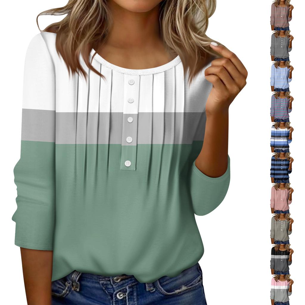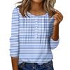 Женский топ с круглым вырезом, декоративными пуговицами и полосками, повседневная футболка однотонного цвета с рукавом 3/4 — купить товар онлайн с бесплатной доставкой по всему миру!