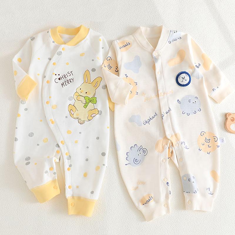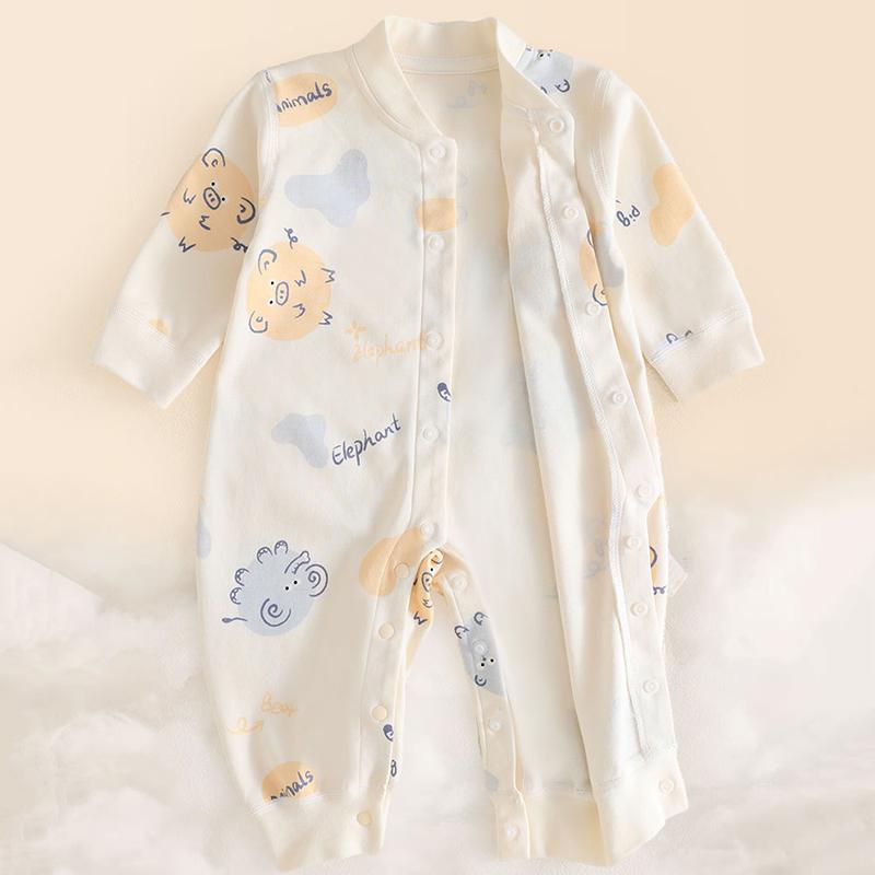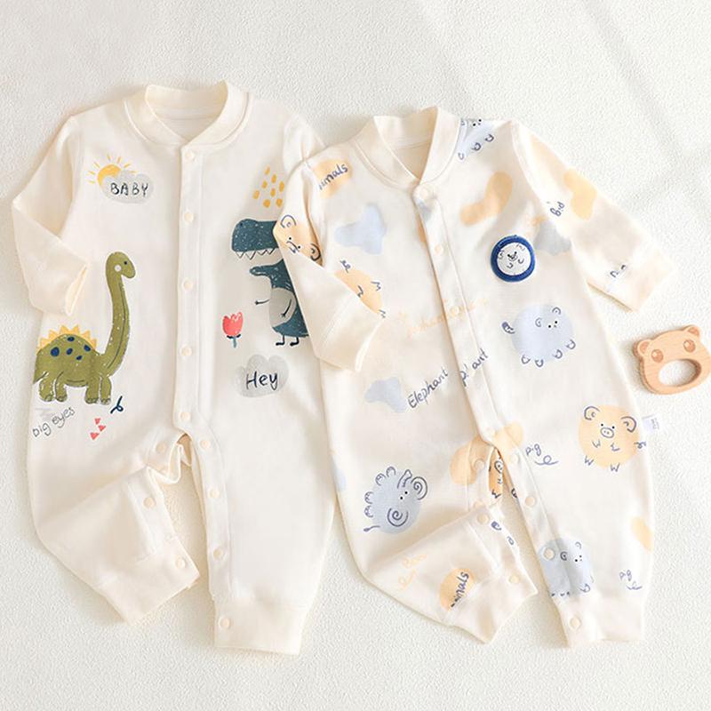 100% Хлопок Детский Ромпер Длинный Рукав Бесшовный Дизайн Однорядная Застежка на Пуговицах Мягкий Безопасный Класс А Боди для Новорожденных Простой Стиль