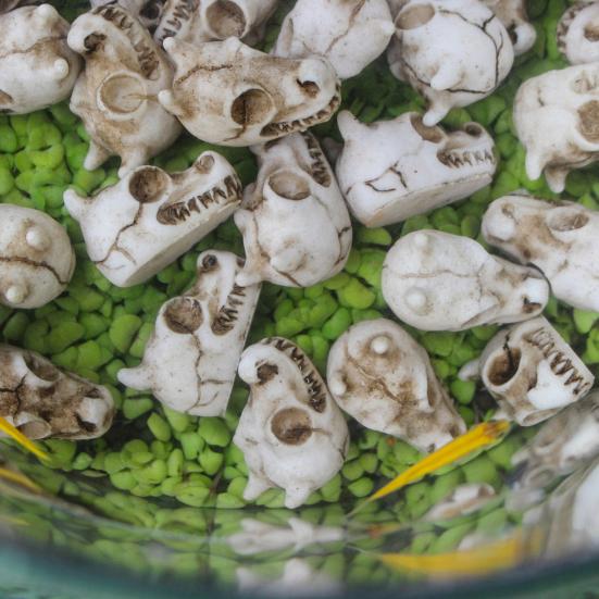 Уникальный дизайн черепа дракона: Украсьте свой декор набором из 20 мини-статуэток черепов драконов, искусно изготовленных из высококачественной смолы для придания причудливого очарования вашей клумбе или аквариуму.