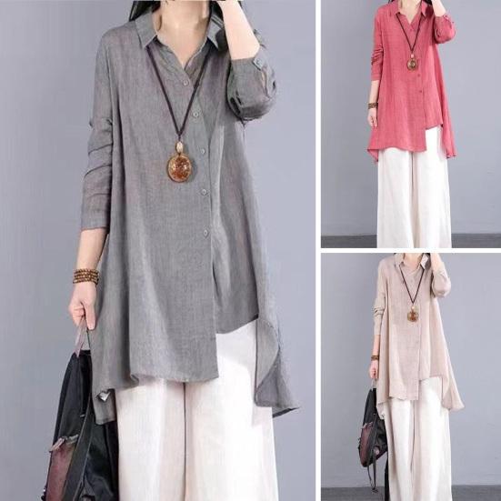 Женская рубашка изготовлена из смеси хлопка и льна, обеспечивающей воздухопроницаемость и комфорт для кожи.. Его свободный крой обеспечивает оптимальный комфорт и воздухопроницаемость, подходит для различных типов фигуры..