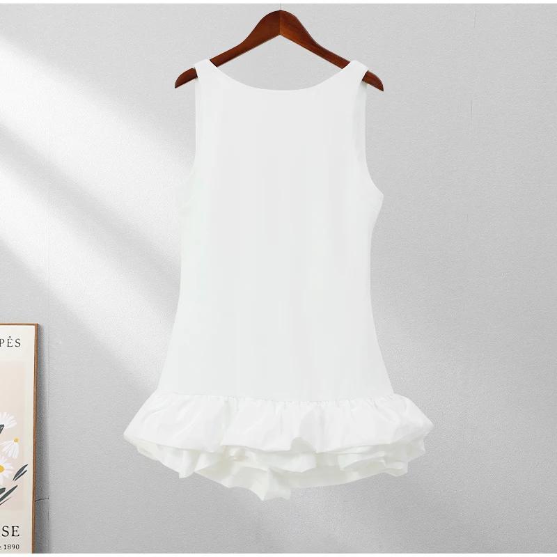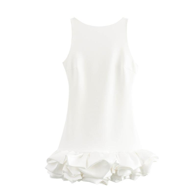 LYRIA Мода Однотонное Платье-Бодикон Мини без Рукавов с Рюшами по Подолу Женское Элегантное с О-образным Вырезом Приталенное Мини-Платье Сексуальное Женское Вечернее Платье