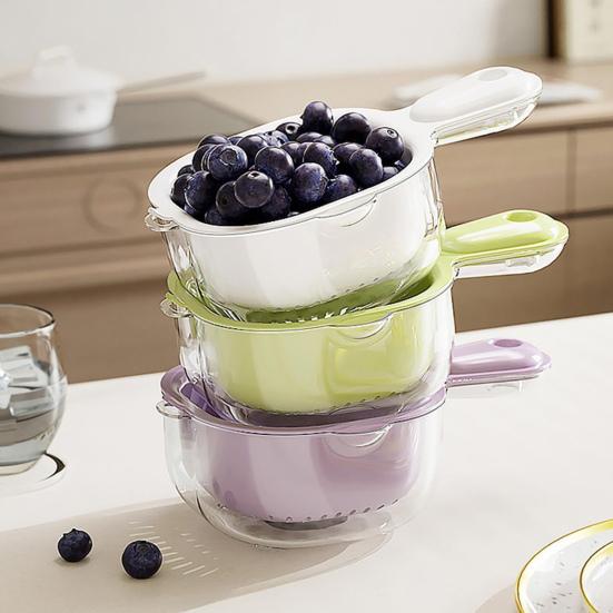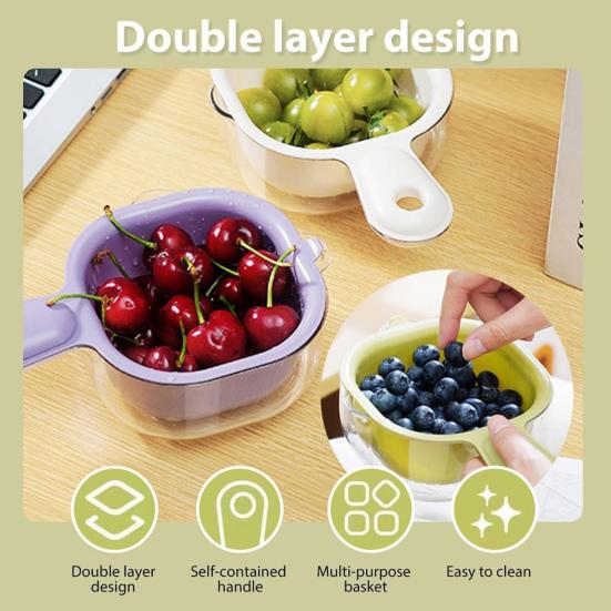 Благодаря продуманной двухслойной конструкции с перфорированной внутренней корзиной и прочным внешним тазом, эффективно сливает воду, сохраняя сухость внешнего слоя для безупречной очистки фруктов, овощей, риса и многого другого.