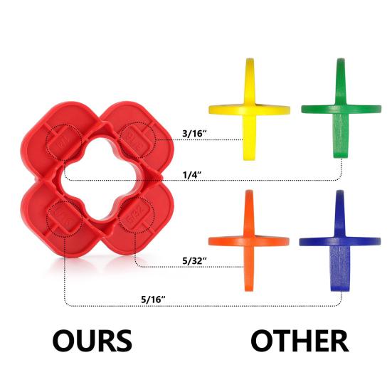 Благодаря ярким красному и синему цветам они хорошо видны в условиях низкой освещенности, что экономит время при установке.. С четырьмя разными размерами проставок (5/32", 3/16", 1/4", 5/16") в одной компактной конструкции носить несколько проставок больше не нужно.