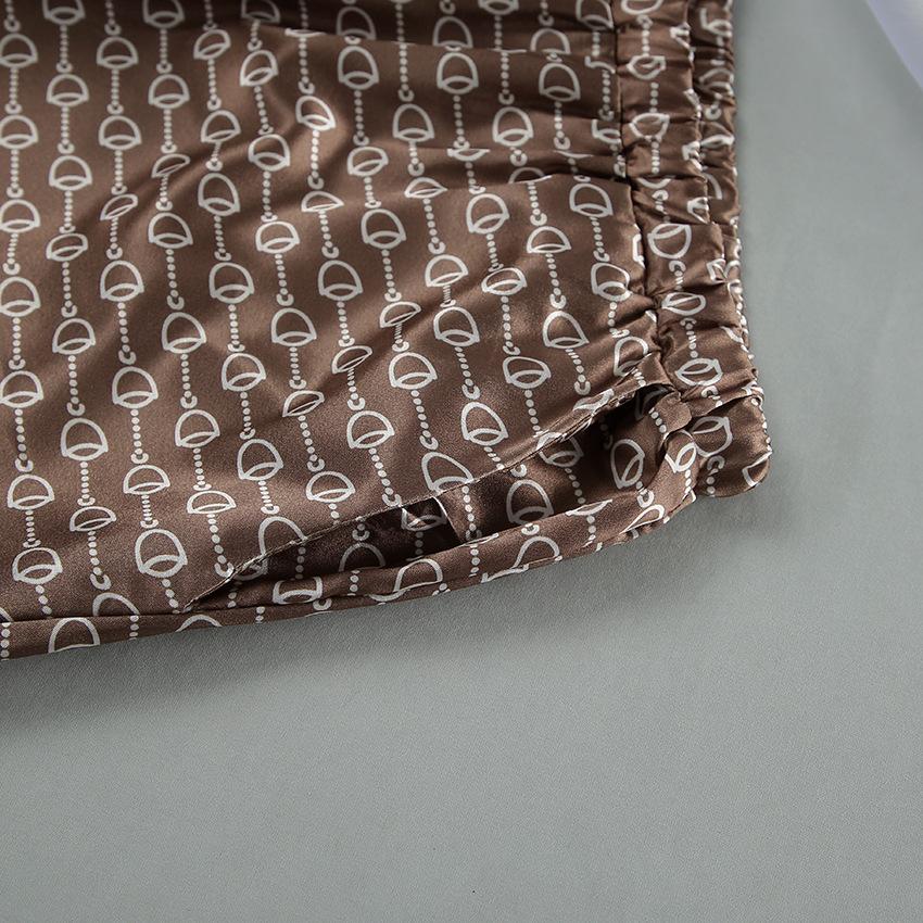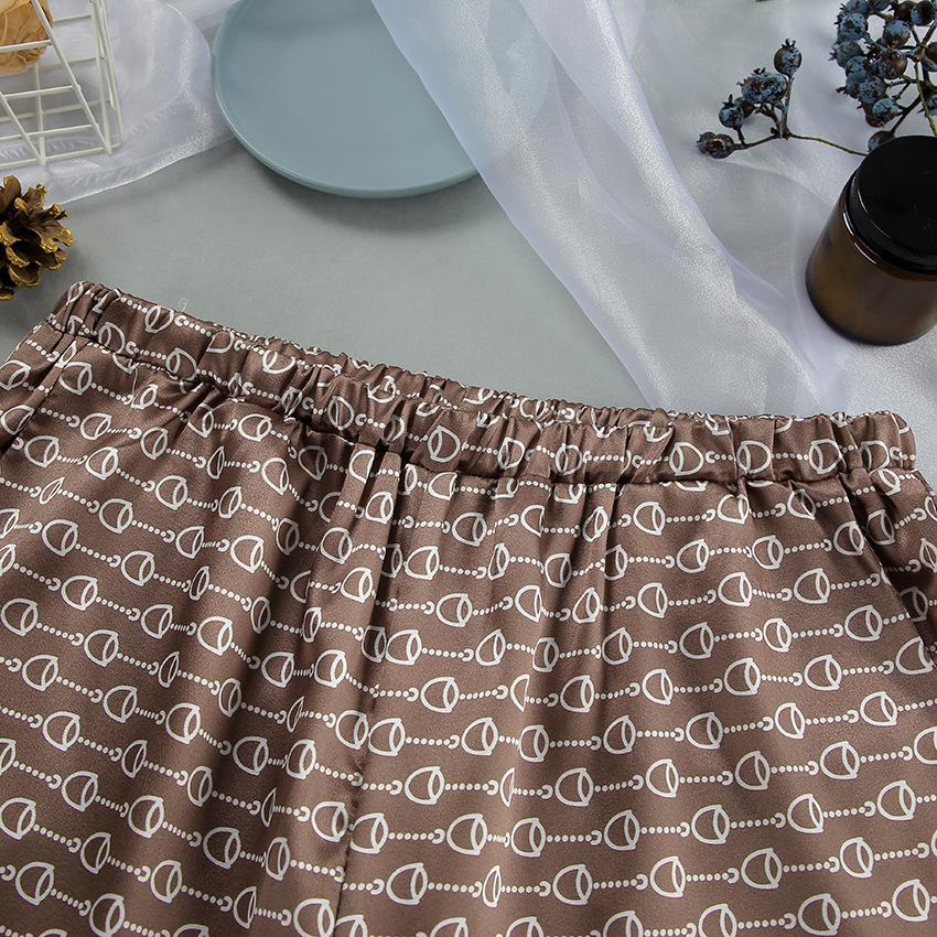 Осенний пижамный комплект в европейском стиле из сатина с принтом, женская свободная домашняя одежда, кардиган-халат, длинные брюки, прохладная ночная одежда для повседневного выхода