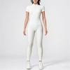 Лето осень короткий рукав Сборка Комбинезон для тренажерного зала Женский фитнес брюки Костюм Спортивные комбинезоны Женский спортивный костюм Одежда для йоги Молния Тренировка Спортивная одежда