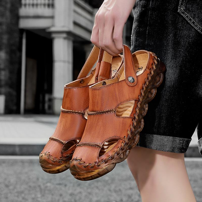 38-46 Летние мужские большие повседневные сандалии Дышащие кожаные сандалии Пляжная обувь