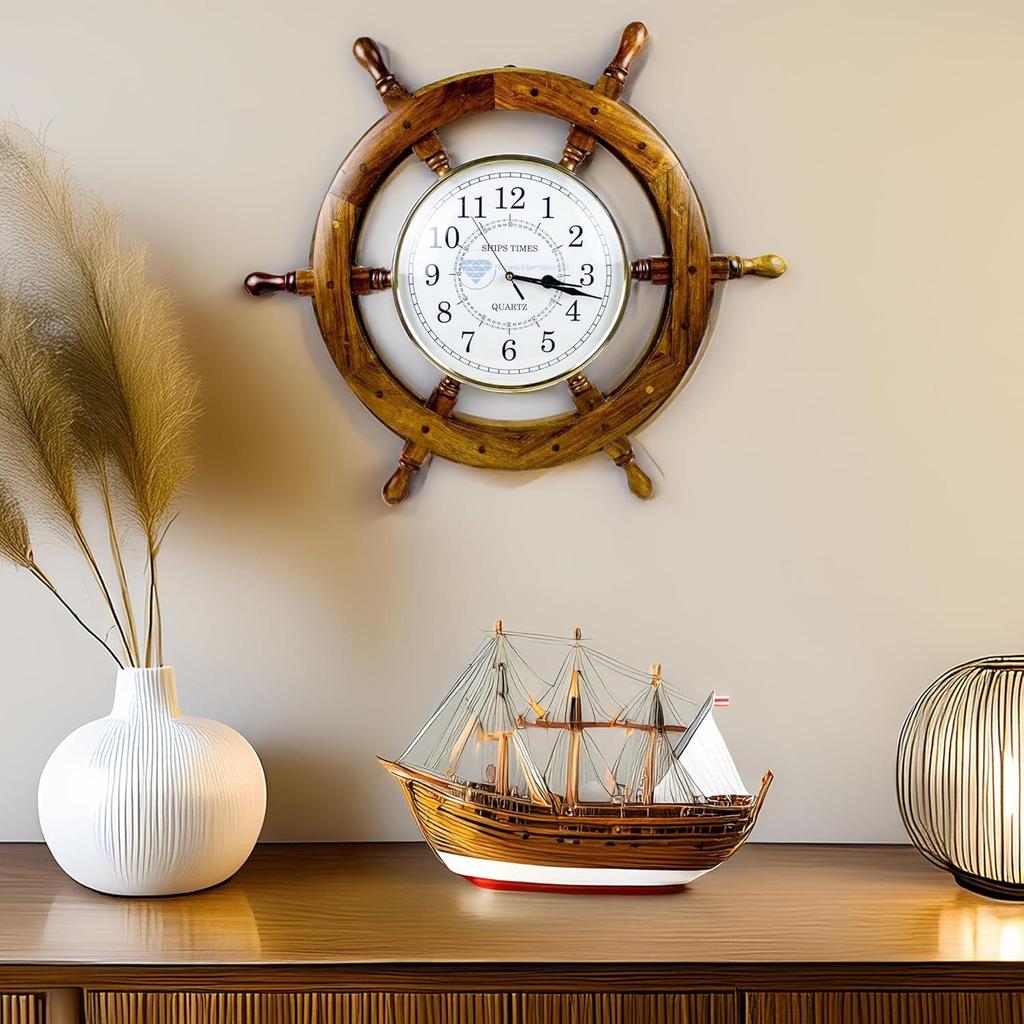 Настенные часы Time | Морской пиратский штурвал | Премиальный ремесленный подарок (18 дюймов)