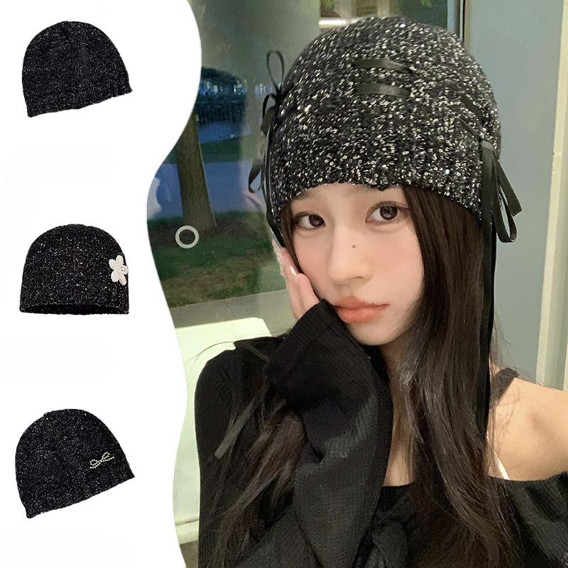 Нишевый дизайн Милая черная ажурная шапка-бант Женская универсальная эластичная кружевная шапка Горячая девушка шапка-бини
