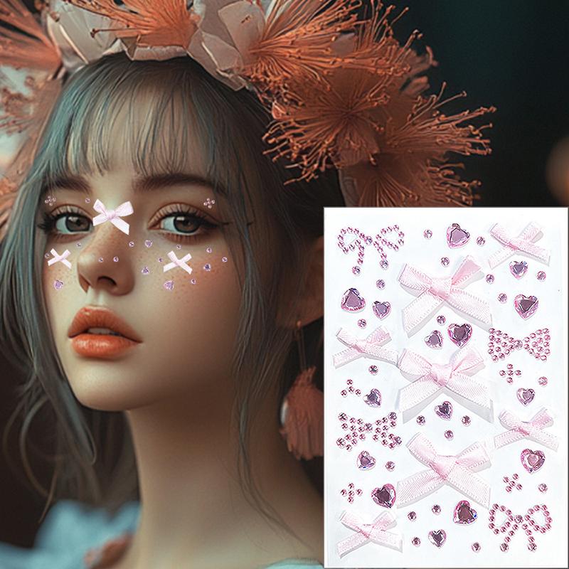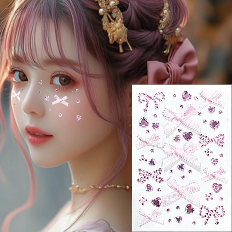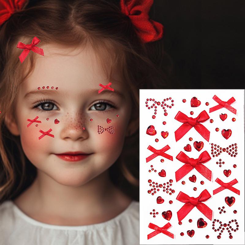 Татуировка-наклейка в виде банта для лица, макияж своими руками, красные бриллиантовые перламутровые банты, временная татуировка-наклейка, самоклеящаяся, для вечеринки, фестиваля