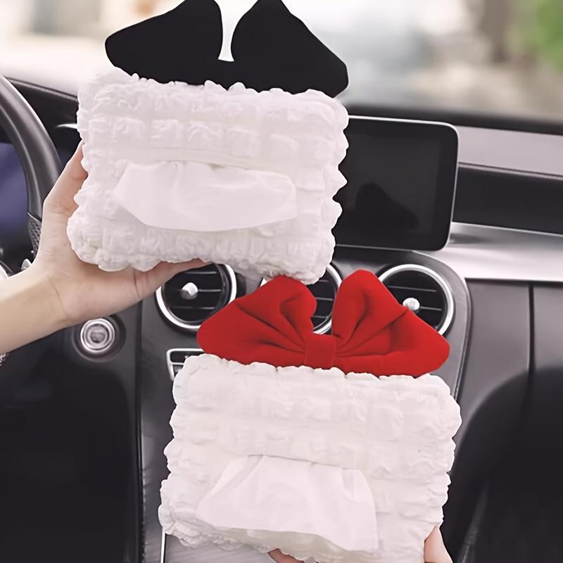 1 шт. Креативная пушистая сетчатая коробка для салфеток в машину - Многофункциональный выдвижной ящик для салфеток на спинку сиденья, Милый декор для салона автомобиля