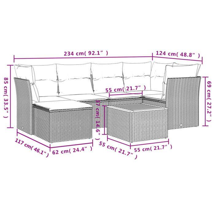VidaXL Salon de Jardin avec Coussins 7 pcs, Canapés de Terrasse, Ensemble de Meubles de Patio, Mobilier d'Extérieur, Mélange 3256080
