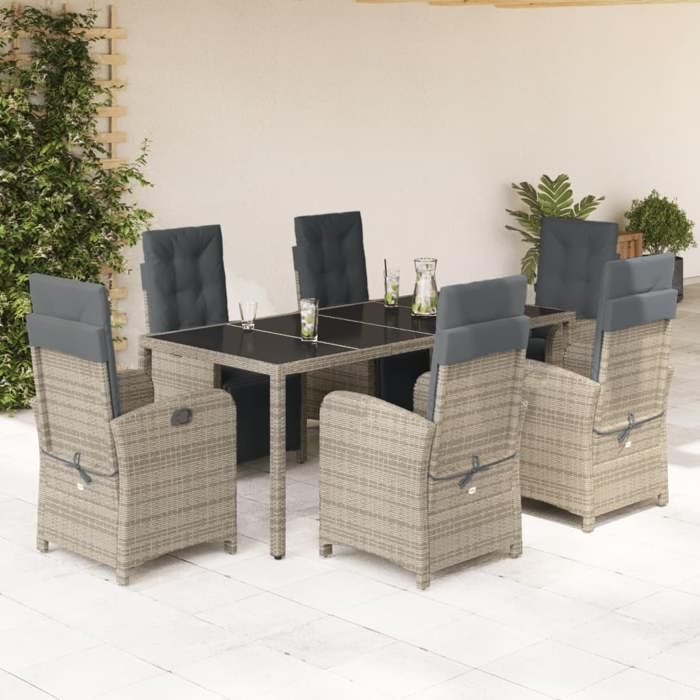 VidaXL Ensemble à Manger de Jardin avec Coussins 7 pcs, Table et Chaises avec Dossier et Repose-pied Réglables 3212466