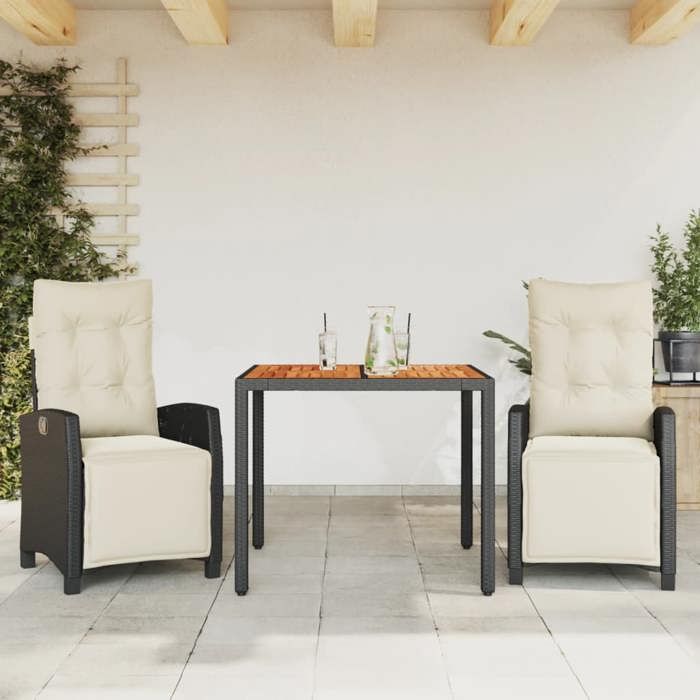 VidaXL Ensemble à Manger de Jardin avec Coussins 3 pcs, Table et Chaises avec Dossier Réglable, Meubles d'Extérieur, 3212900