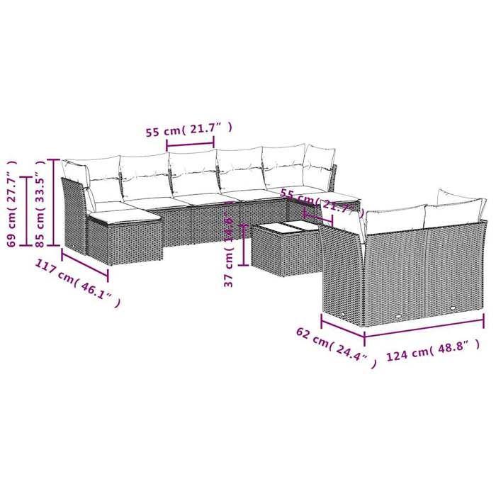 VidaXL Salon de jardin avec coussins 10 pcs beige résine tressée 3250158