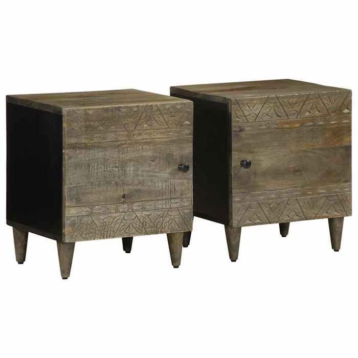 VidaXL Tables chevet 2 pcs gris clair 40x33x46 cm bois manguier solide, armoire de lit, meuble de chambre à coucher, table 4017789
