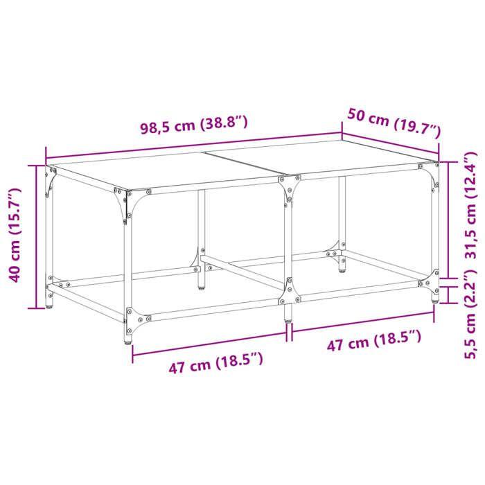 VidaXL Table basse avec dessus en verre transparent 98,5x50x40cm acier, table d'appoint, table de salon, table à thé, bout 845978