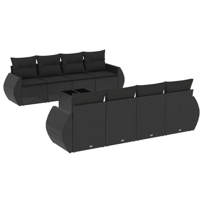 VidaXL Salon de Jardin avec Coussins 9 pcs, Canapés de Terrasse, Ensemble de Meubles de Patio, Mobilier d'Extérieur, Noir 3221144