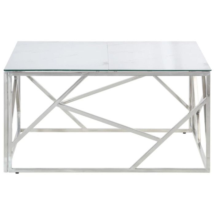 VidaXL Table basse argenté acier inoxydable et verre trempé 349947