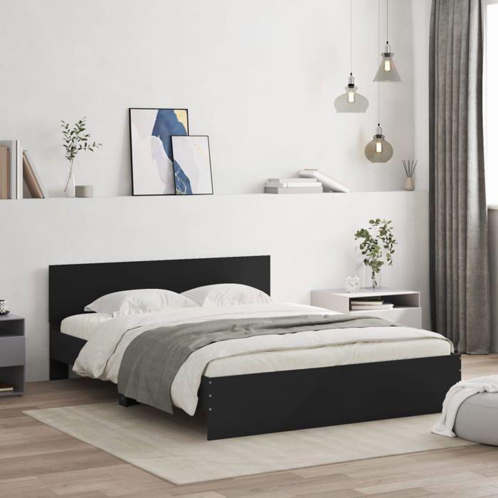 VidaXL Cadre de lit avec tête de lit noir 150x200 cm 3207477