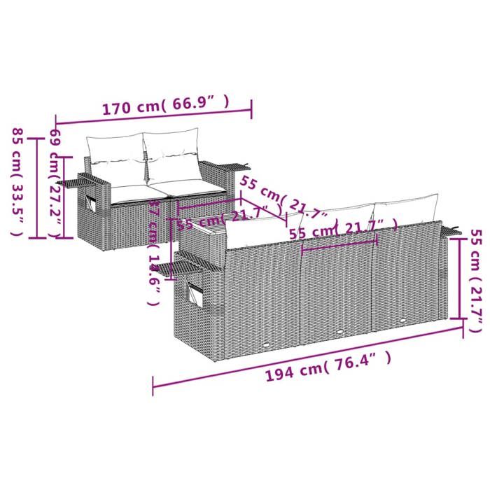 VidaXL Salon de Jardin avec Coussins 6 pcs, Canapés de Terrasse, Ensemble de Meubles de Patio, Mobilier d'Extérieur, Noir 3256776