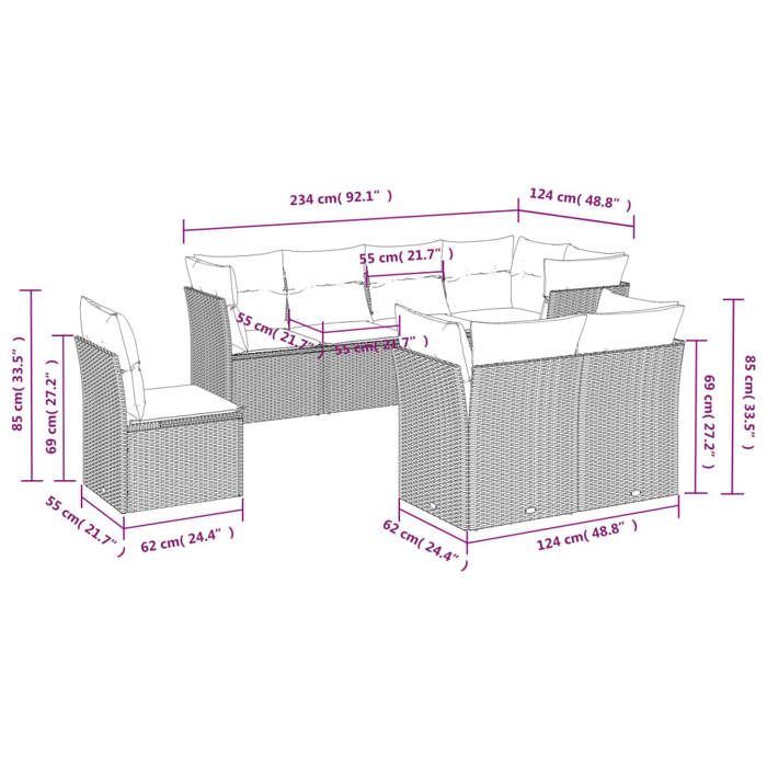 VidaXL Salon de jardin 8 pcs avec coussins gris résine tressée 3217930