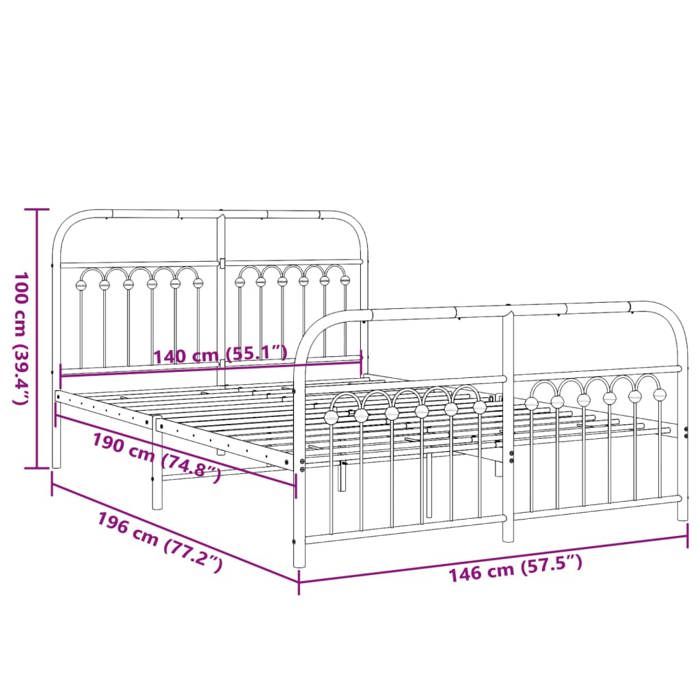 VidaXL Cadre de lit métal avec tête de lit/pied de lit noir 140x190 cm, lit double, meuble de chambre à coucher, lit 376618